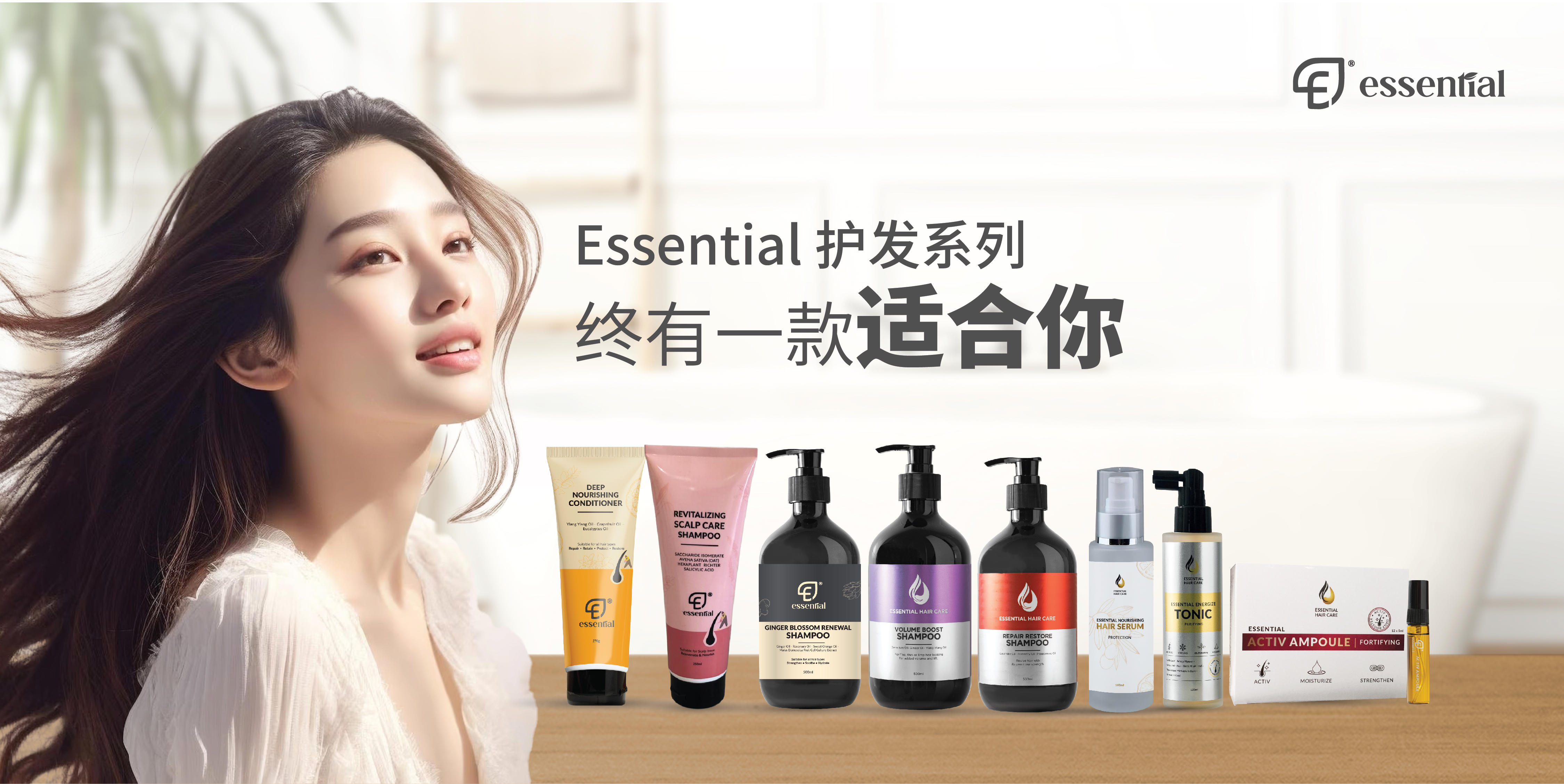 Essential Hair Care 护发系列 为所有发质提供全方位护理。无论你是 毛躁枯干、掉发稀疏还是敏感头皮,我们都为你准备了针对性产品,从 深层滋养洗发水到修复护发素和精华油,帮助秀发恢复健康光泽。